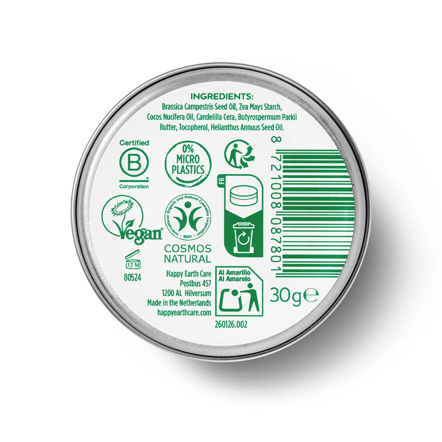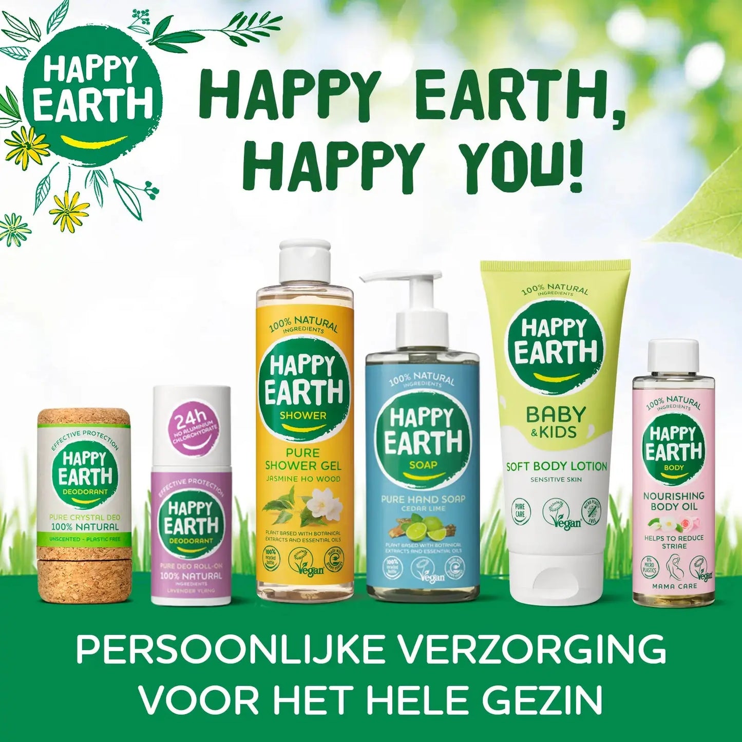 Happy Earth offers cheerfulness and optimism with the best products for you and the planet. Their wide range includes deodorant, shower gel, hand soap, baby care, bars, body care, and pregnancy care. At Happy Earth, they use only 100% natural ingredients. The products are vegan, microplastic-free, and free of harmful additives. That's what makes your skin extra happy! Furthermore, the packaging is as sustainable as possible: completely zero waste, plastic-free, tubes made from sugarcane or 100% recycled plastic. And not to forget: they produce in the Netherlands using green energy. Happy Earth, happy you!